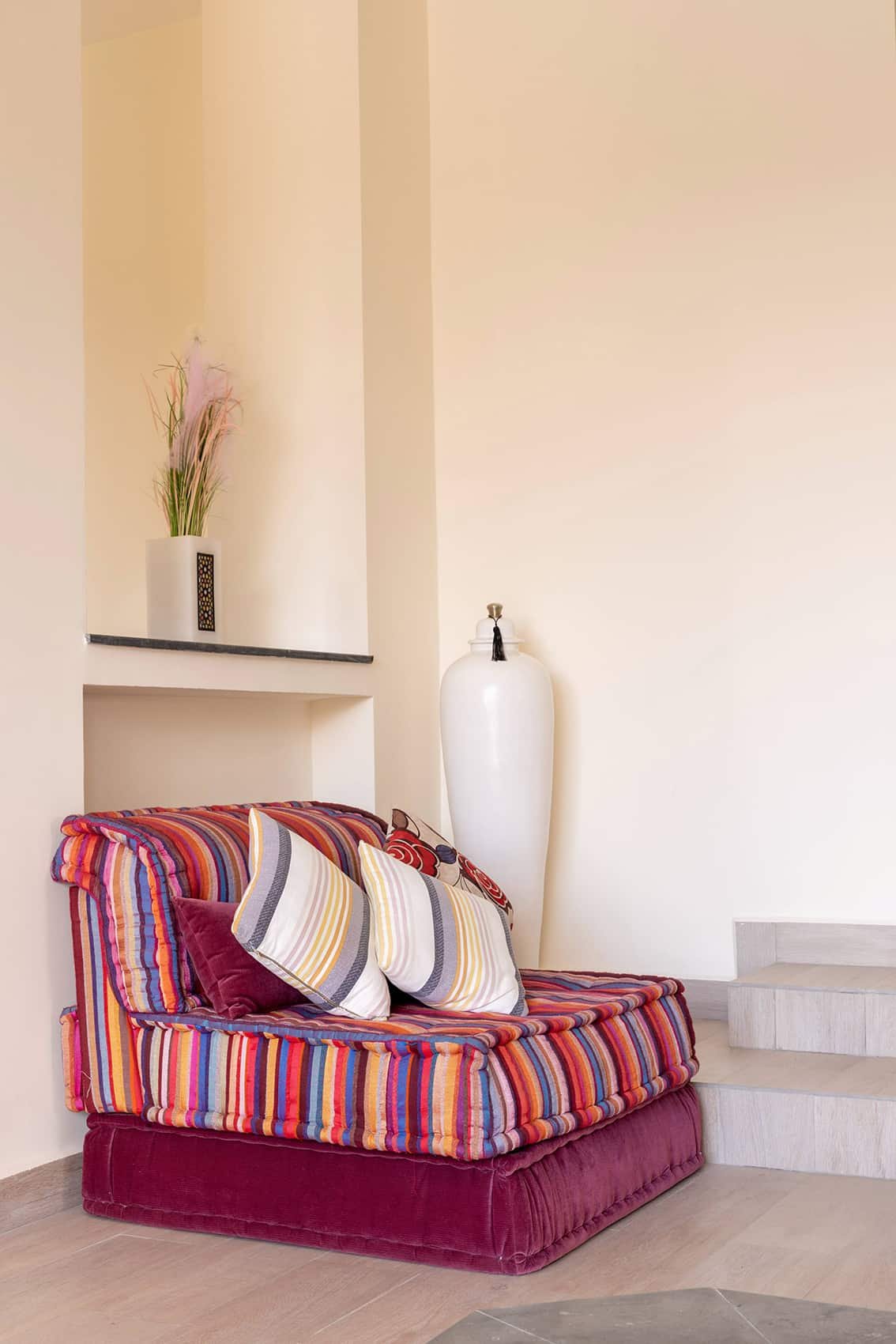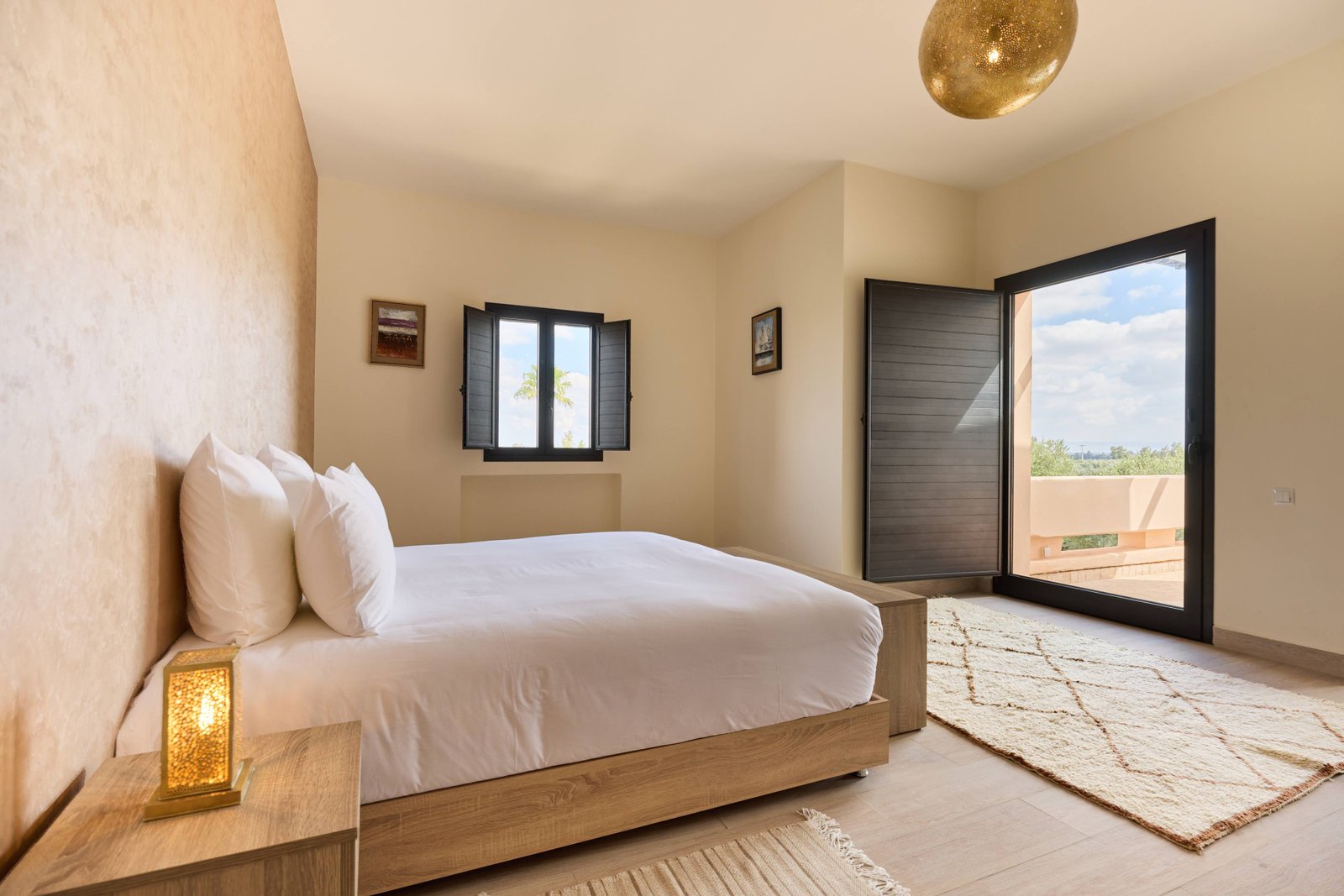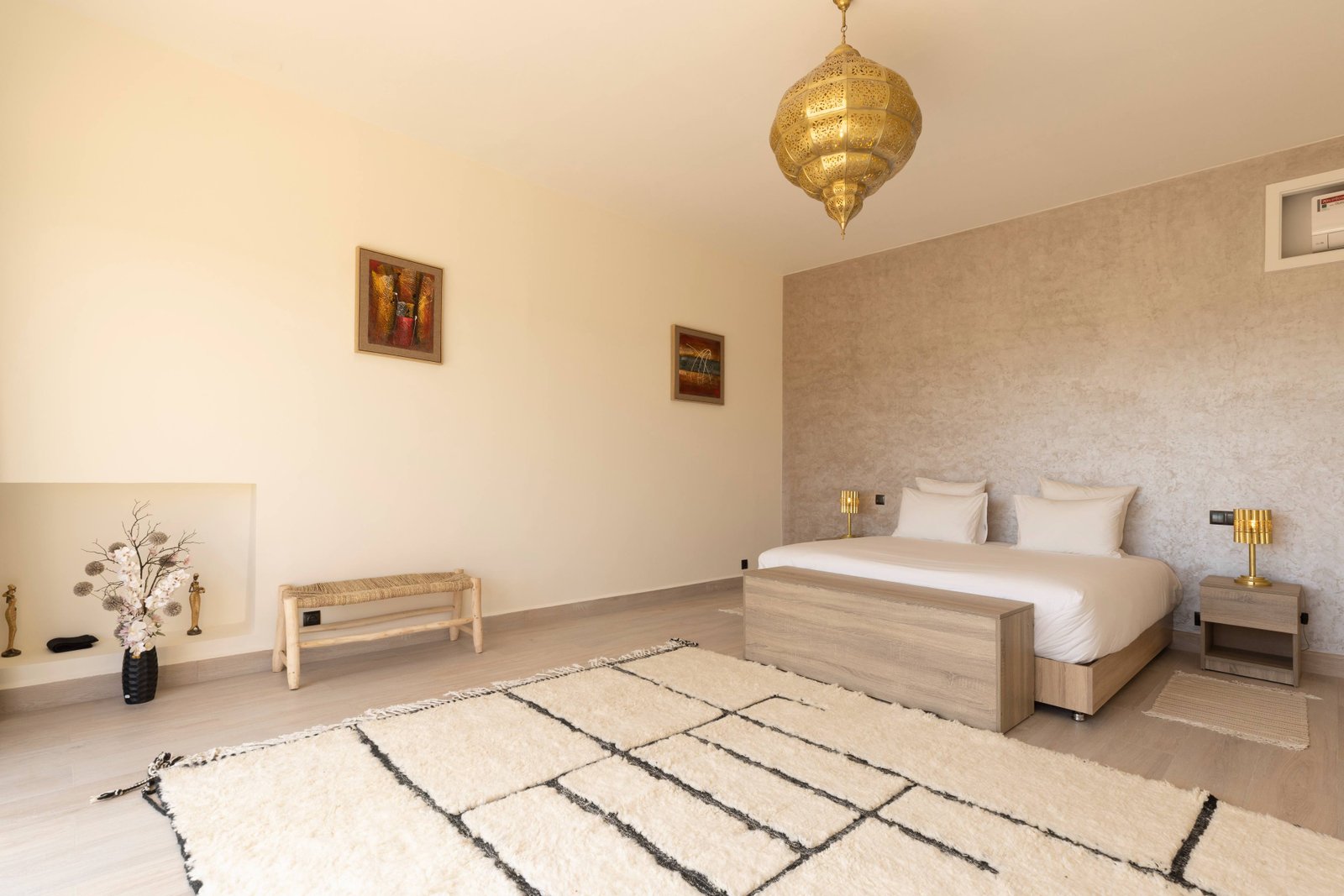 À l’intérieur, notre villa à Marrakech présente un décor bohème étonnant et un esprit minimaliste, offrant une toile de fond parfaite pour votre séjour à Marrakech. Après une longue journée de marche dans les ruelles sinueuses de la médina ou une excursion à la cascade des montagnes de l’Atlas, nos lits confortables et notre mobilier de haute qualité vous offrent le summum de la détente et du confort.